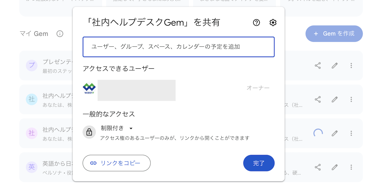 Geminiの「Gem」機能とは?(自分専用の特化型AI)