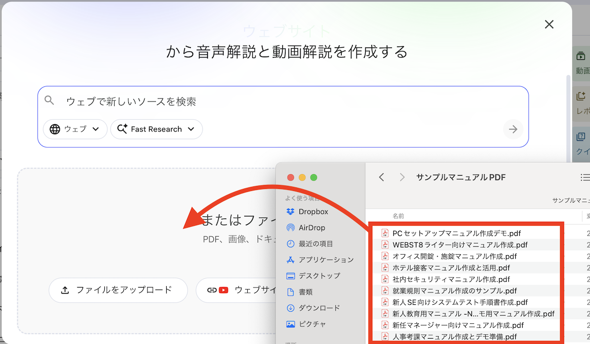 ここでは、社内マニュアル系のドキュメント(PDF)をソースに指定します。