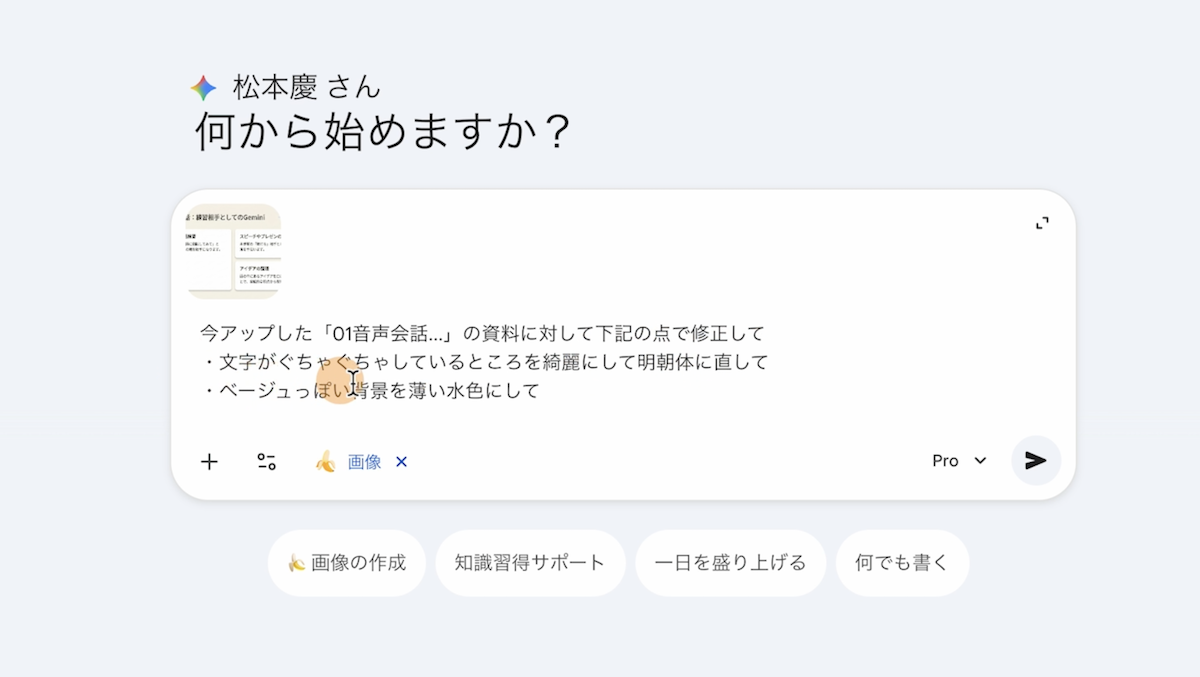 画像化したスライドに対してGeminiで微修正指示をかけることで微調整できます。
