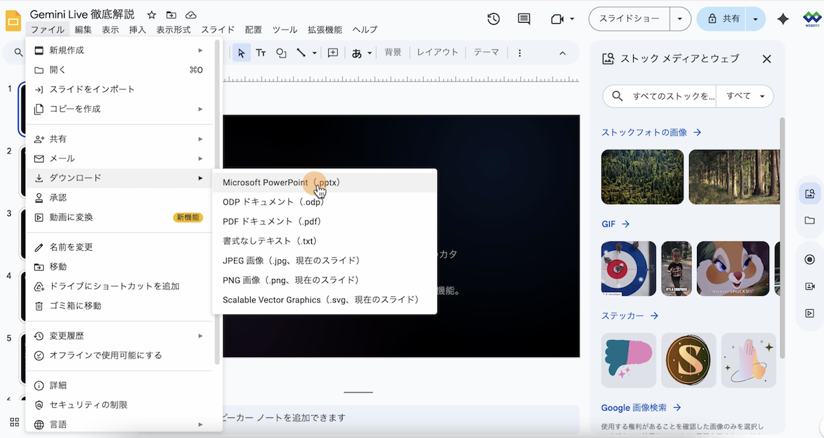 必要に応じて、GoogleスライドからPowerPoint形式(.pptx)でダウンロードできます。