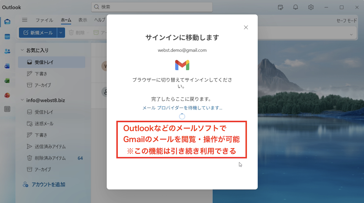 またGmailをOutlookに接続することも可能なので、独自ドメインのメールをOutlookで接続しつつ、Gmailに対しても接続しておくことでOutlook一本で運用することも可能です。