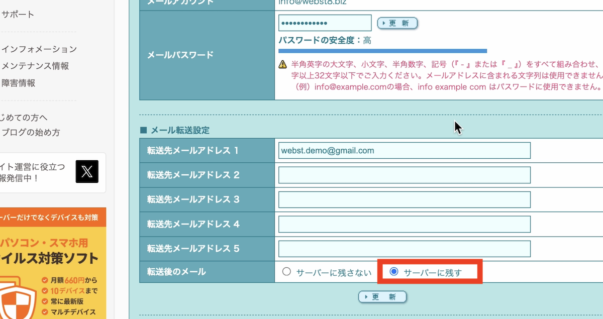 ■サーバー側で転送後もメールをサーバーに残す設定をする