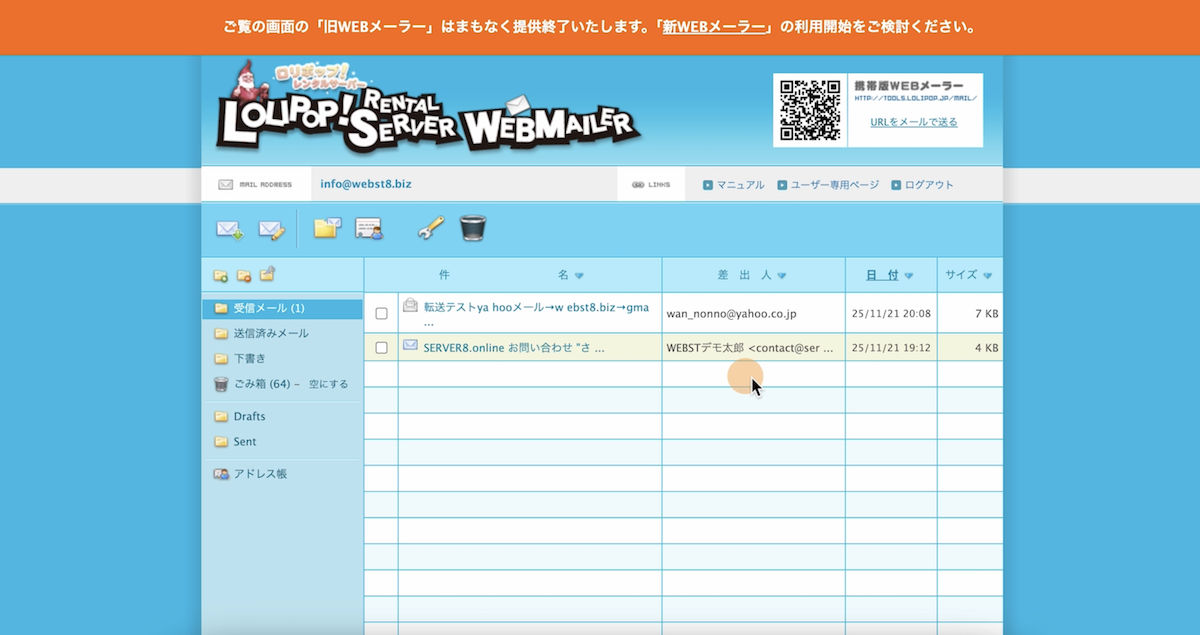 ■サーバーのWebメールなどでメールをチェック(Gmailと合わせて二重チェック)