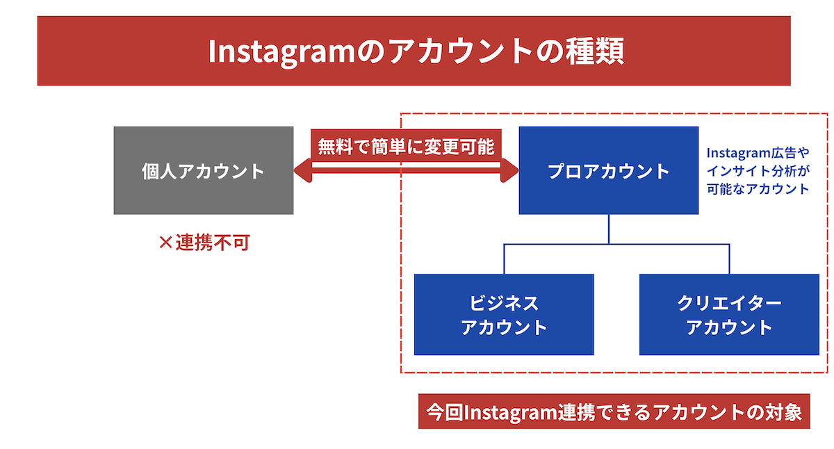 連携可能なインスタグラムアカウント種類はプロアカウントのみ